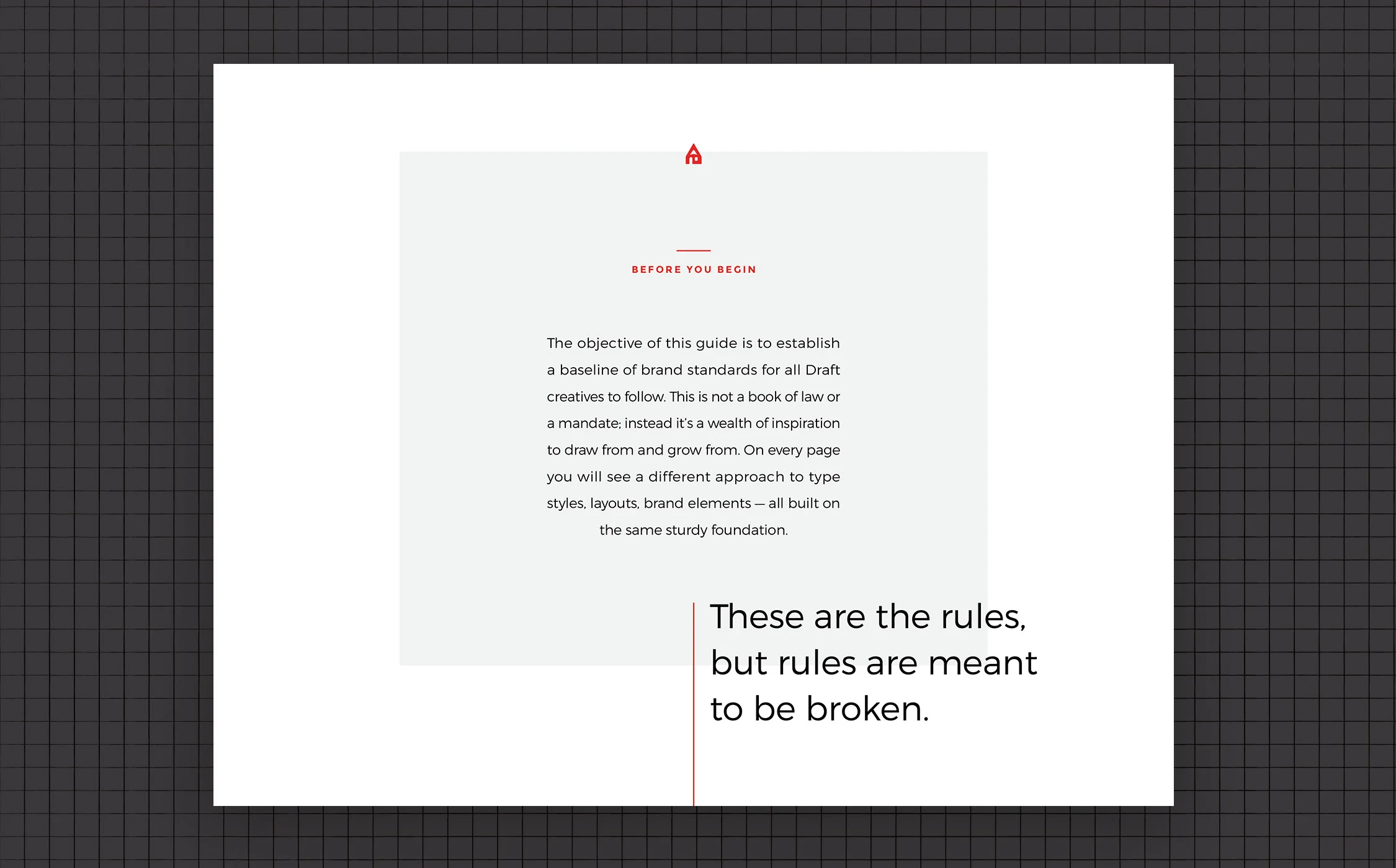 We tightened up the typography, colors, and rules, and updated the look to coincide with a more digitally driven culture. But we made sure to hold on to a few handcrafted details, because every great project starts with a Draft.